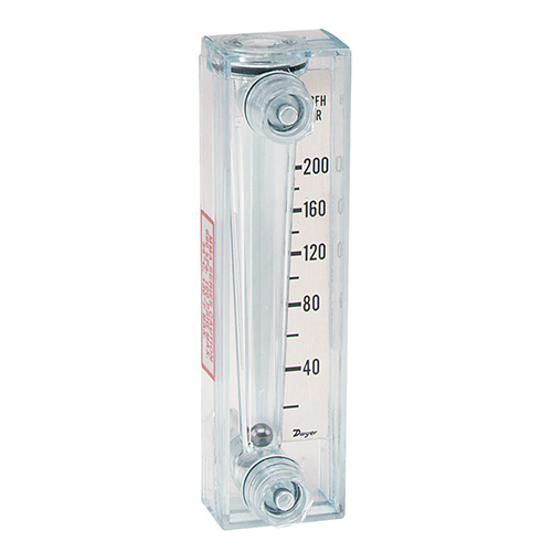 量程刻度印刷于流量计管旁的铝上,而不是管子上,因此球形转子的位置可见。